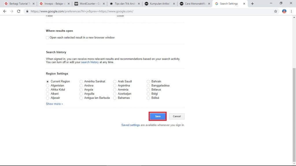 Catatan: Jika cara di atas gagal, install VPN untuk menonaktifkan / mematikan Safe Search di Google.