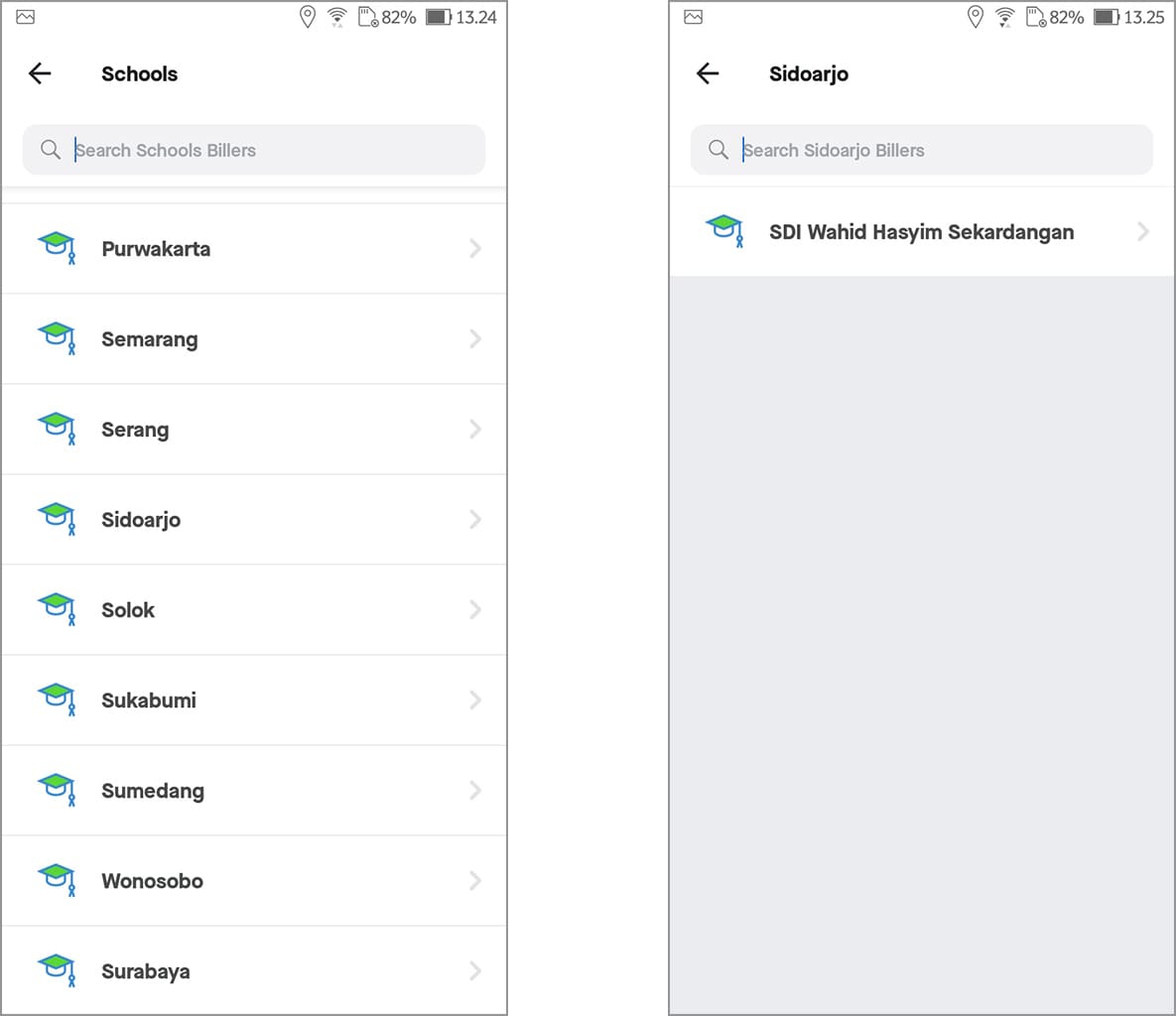 5. Pilih lokasi sekolah anak, kemudian ketuk nama sekolah.