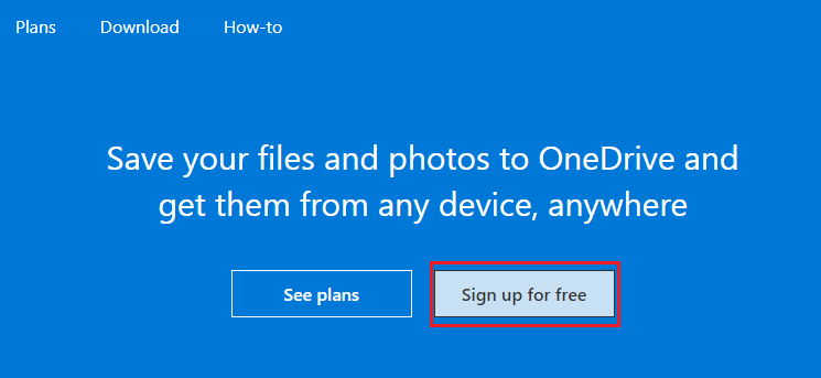 1. Langkah pertama, buka situs One Drive dan klik tombol Sign up for free.