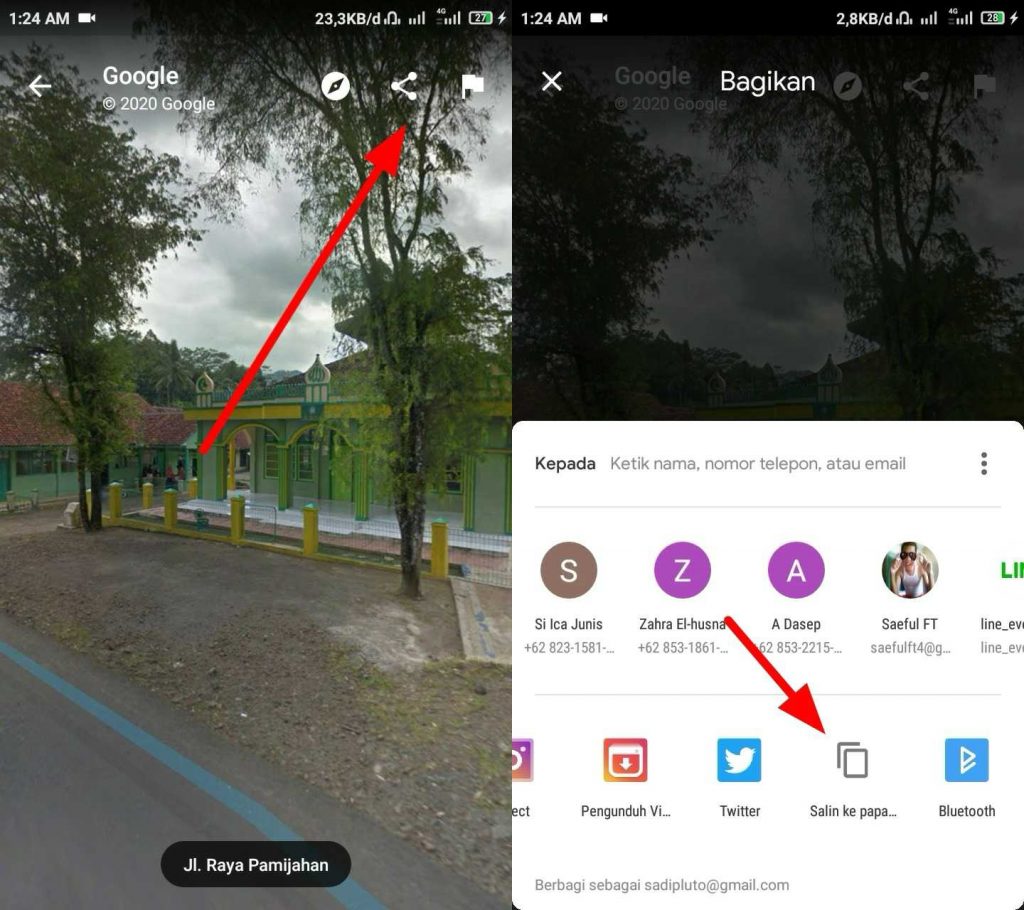 2. Ketuk icon share di pojok atas, lalu cari pilihan Salin ke papan klip.
