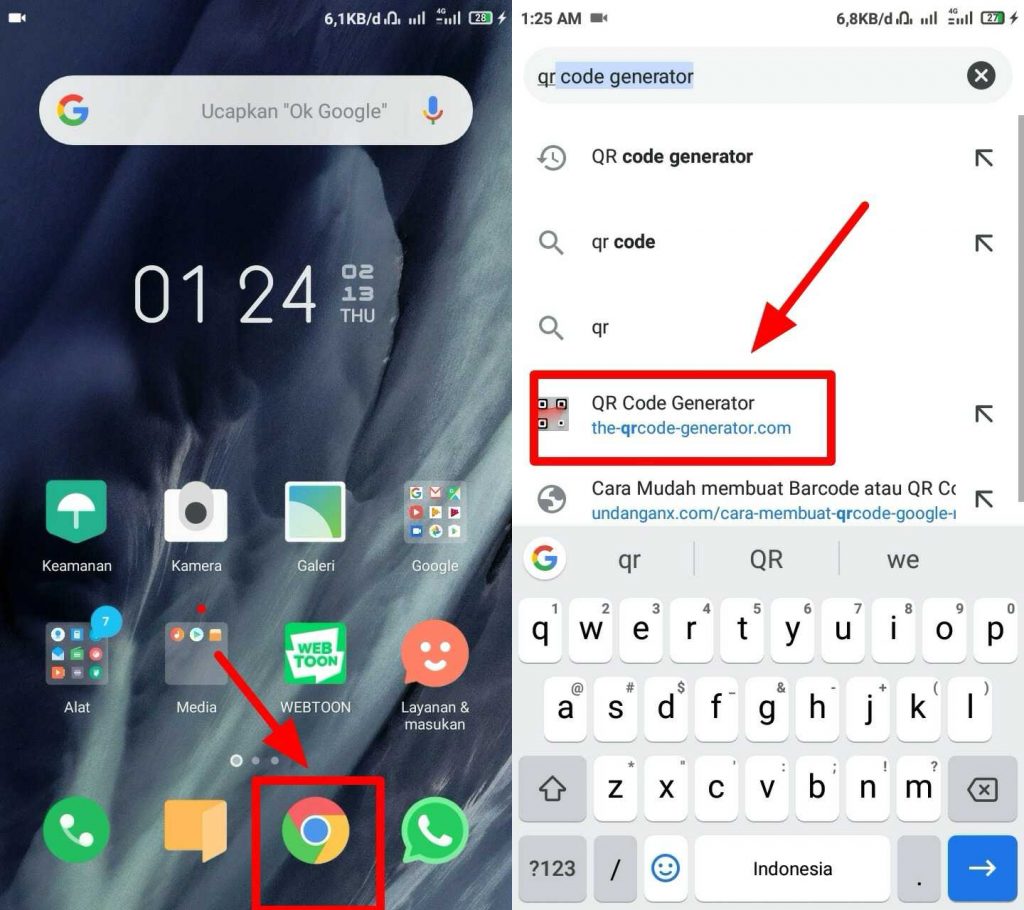 3. Setelah tersalin, buka aplikasi Google Chrome, lalu buka situs the-qrcode-generator.com