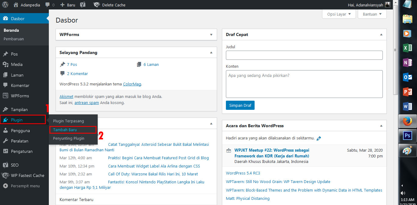 2. Setelah masuk ke Homepage, kamu pilih menu Plugin – Tambah Baru.