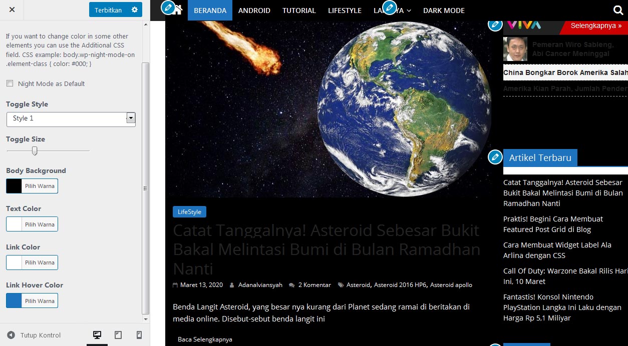 Nah, itu tadi tutorial Cara Mudah Membuat Dark Mode di Blog WordPress yang telah penulis bagikan untuk kamu. Selamat mencoba.