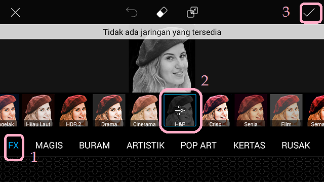 17. Agar foto terlihat lebih keren, pilih kembali ‘Effect’.