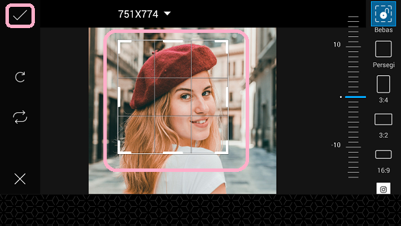 5. Potong foto sesuai dengan kebutuhan kamu. Klik centang, bila kamu sudah selesai mengatur.