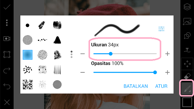 Atur ukuran ‘Brush’ sesuai kebutuhan kamu, dan klik centang.