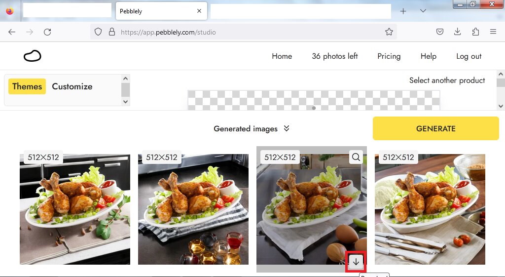 Hanya dengan beberapa langkah sederhana saja, kini kita dapat membuat foto prodak menjadi lebih menarik lagi. Namun sayangnya karena bersifat gratis, resolusi foto hanya 512×512 px saja. Untuk bisa mendapatkan resolusi yang lebih baik, kita perlu mengupgrade akun Pebblely ke versi premium.
