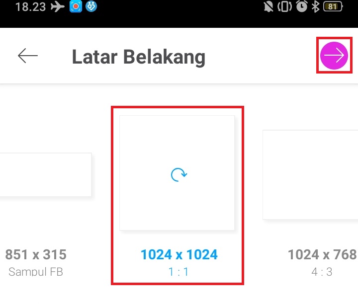 4. Pilih lebar latar belakang 1:1, dan klik centang.