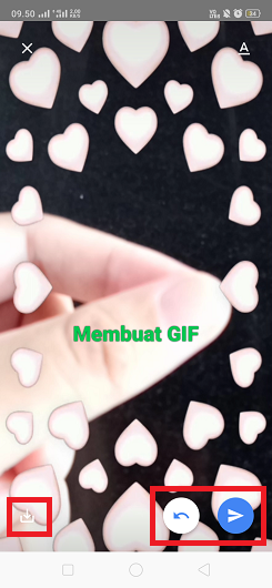 9. Klik icon ‘Save’ untuk menyimpan GIF di galeri perangkat Android. Klik icon ‘Undo’ untuk mengulangi membuat GIF. Klik icon ‘Share’ untuk mengirim GIF ke chat kamu.