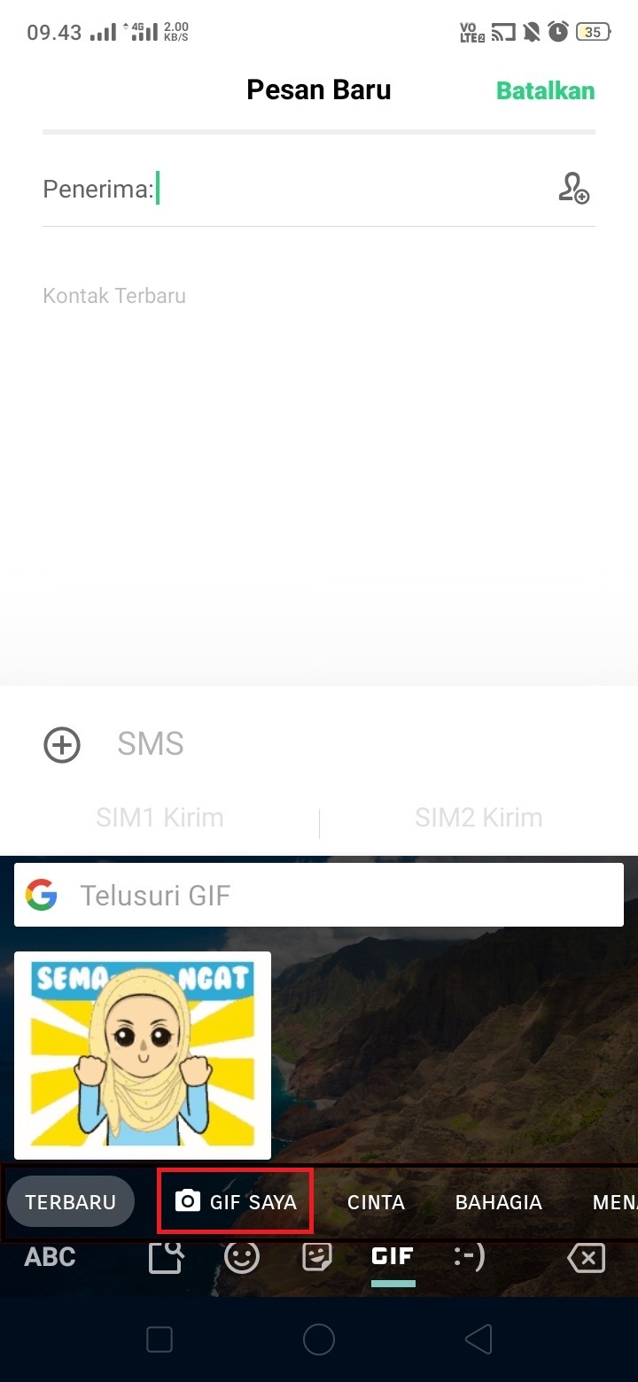 3. GBoard telah menyediakan banyak tampilan GIF dengan berbagai macam tema. Pilih ‘GIF Saya’ untuk membuat GIF.