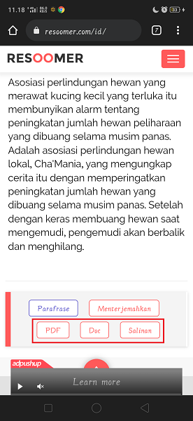 Situs ini gratis dan dapat dibuka melalui aplikasi browser apapun yang terinstall pada perangkat kamu. Situs Resoomer ini, akan sangat bermanfaat bagi kamu yang sedang membuat tulisan essay, skripsi, artikel dan jenis tulisan lainnya.