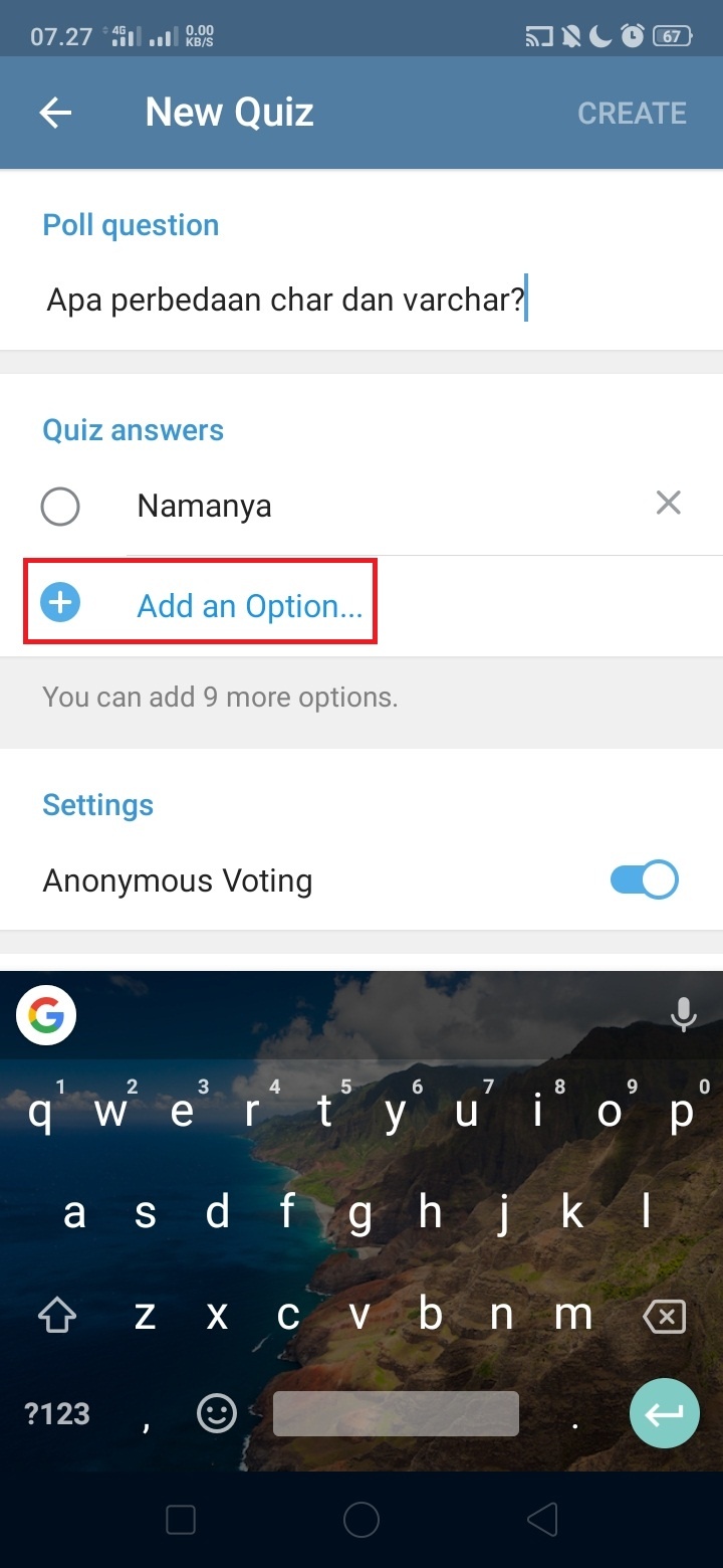 11. Masukkan pilihan jawaban, klik ‘Add an Option…’ untuk menambah jawaban.
