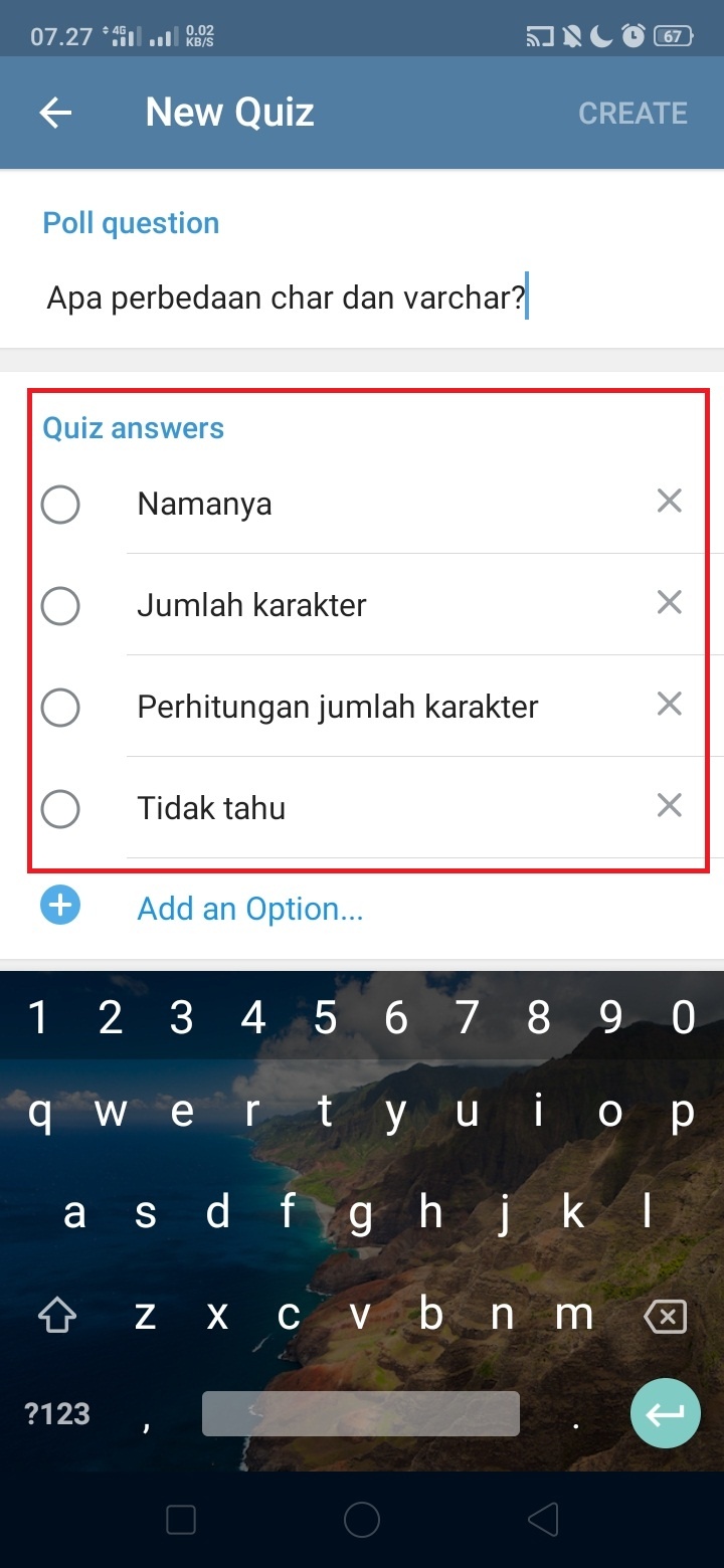 Aplikasi Telegram memiliki banyak fitur terbaru yang tidak dimiliki oleh aplikasi chatting lainnya, seperti download video youtube, dan membuat polling/ pemungutan suara. Telegram juga bisa membuat soal kuis. Lalu bagaimana cara membuat kuis di aplikasi Telegram? Mudah kok, kamu hanya perlu mengikuti beberapa langkah mudah di bawah ini.