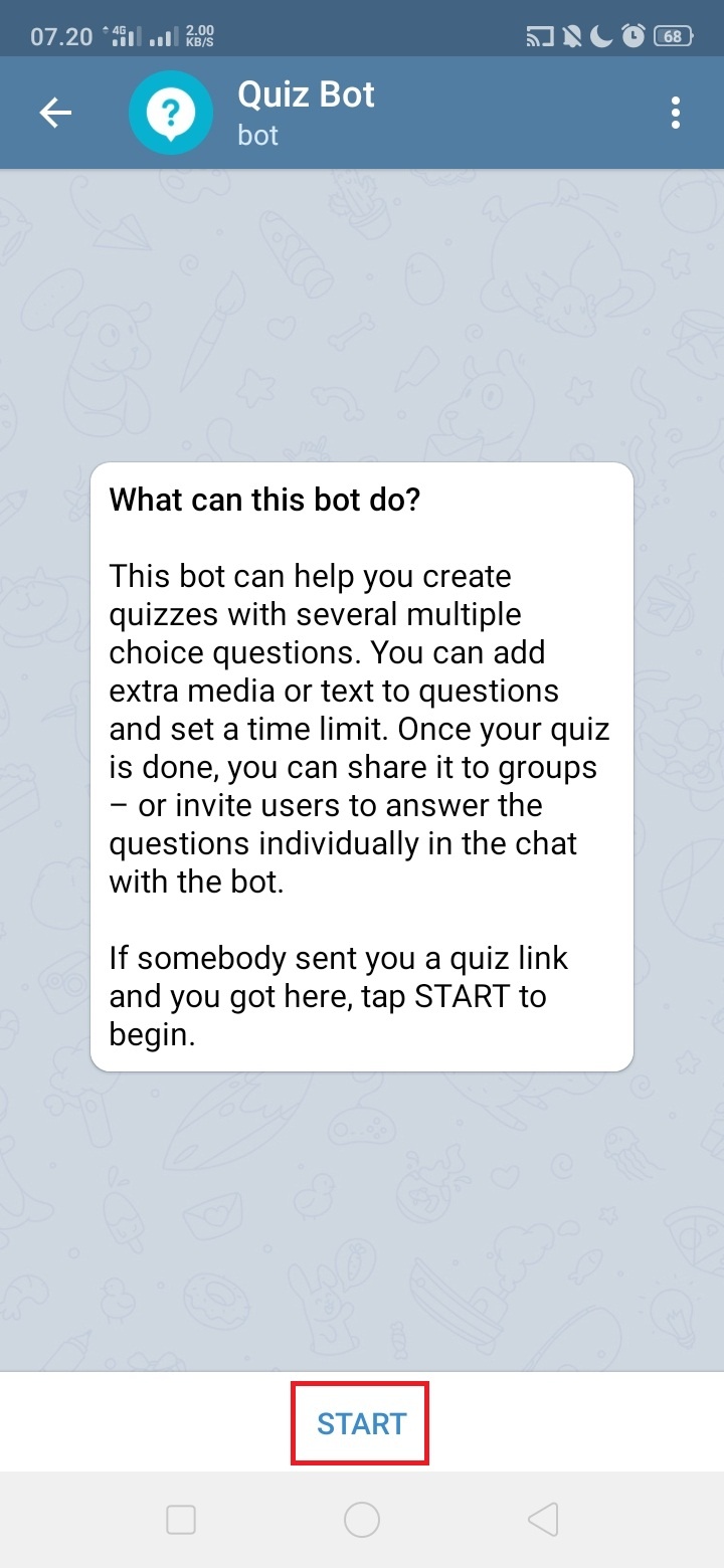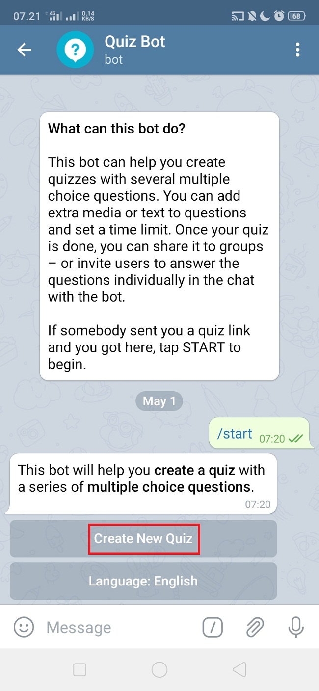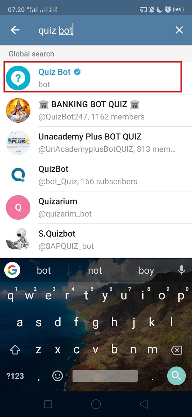 3. Ketikkan quiz bot, dan lihat hasil pencarian. Pilih dan klik quiz bot.