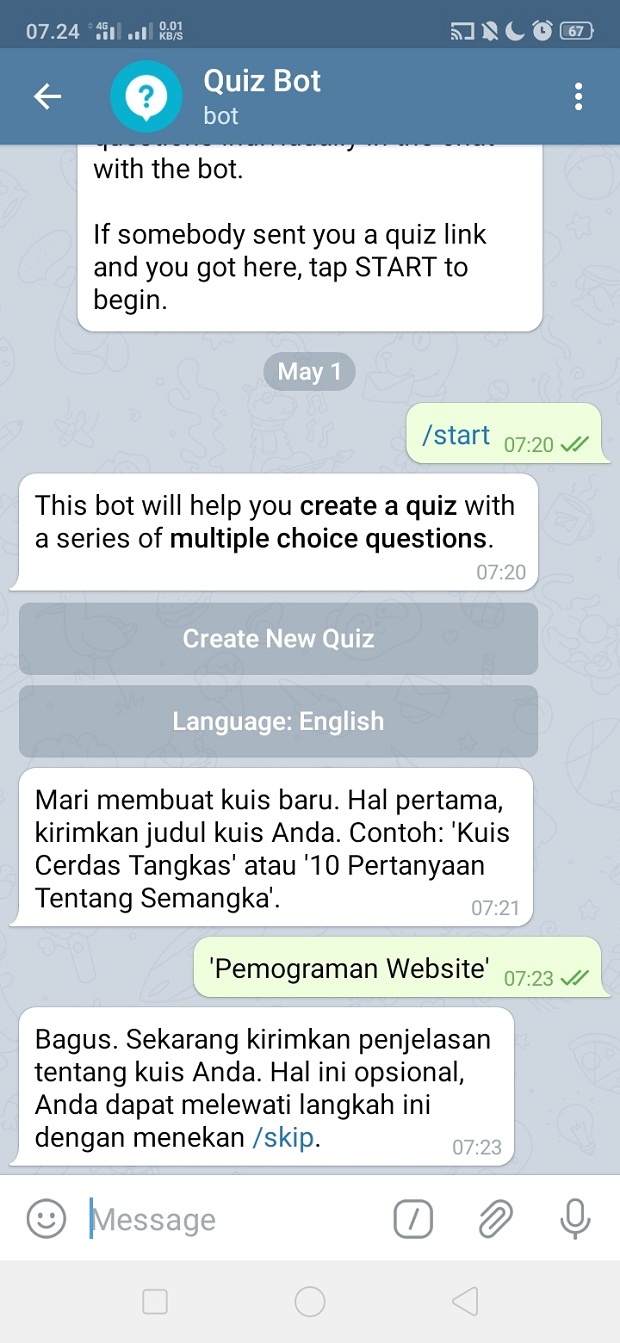 Demikian penjelasan dari tutorial ‘Cara Membuat Kuis di Telegram’. Selamat mencoba.