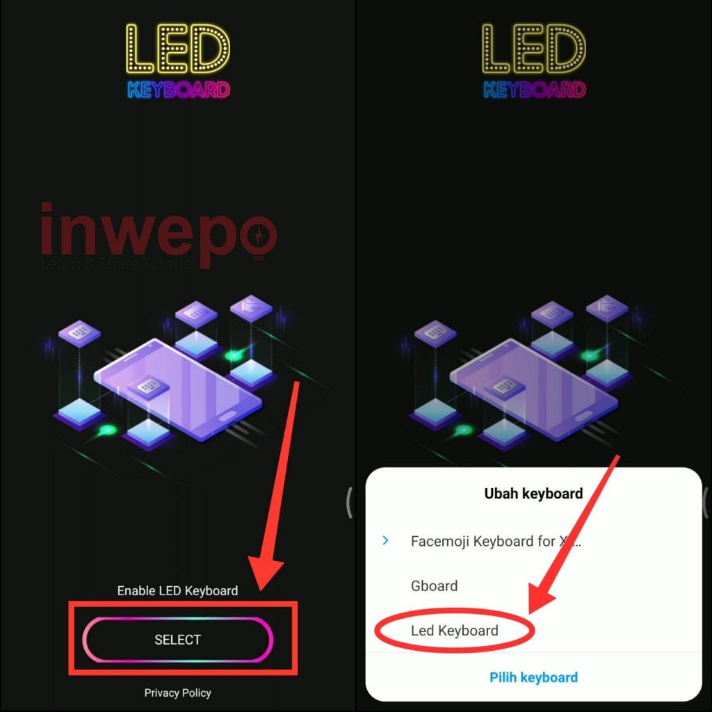 3. Tap menu SELECT lalu pilih lagi pada menu pop up yang muncul LED Keyboard.