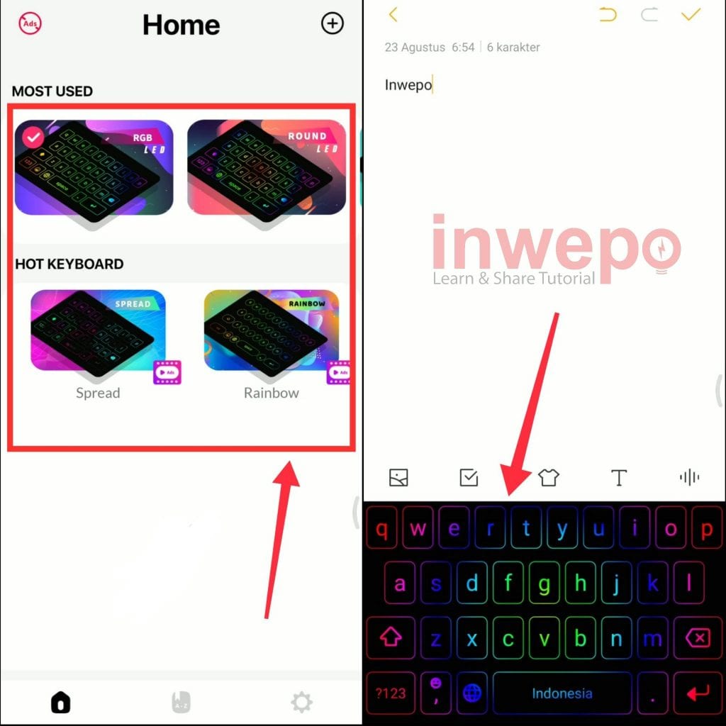 4. Pilih tema keyboard LED yang ingin kamu gunakan.