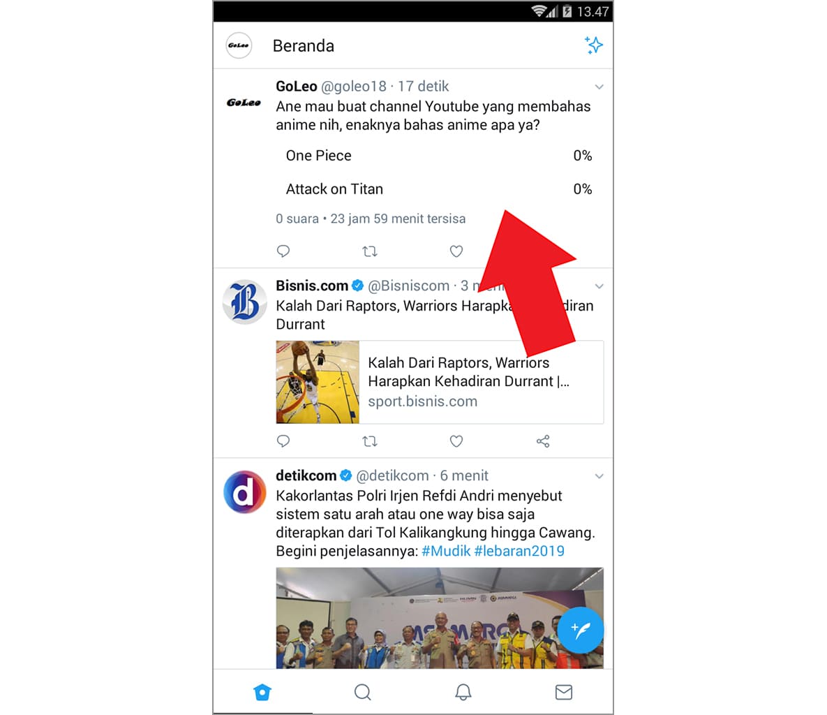 Demikian tutorial cara mudah membuat polling di Twitter Android. Semoga bermanfaat.