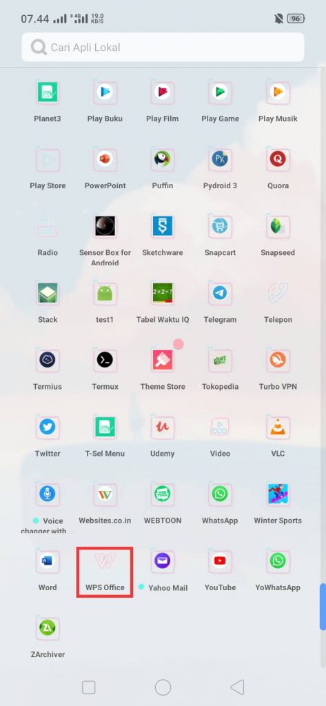 2. Buka aplikasi WPS Office. Apabila kamu belum memasang aplikasi WPS Office di Android kamu, kamu bisa memasang aplikasi WPS Office di Play Store.
