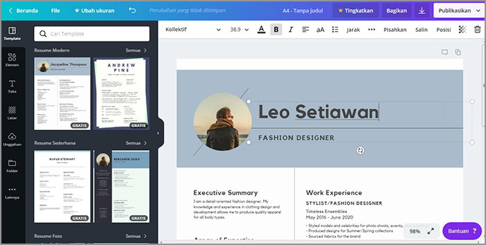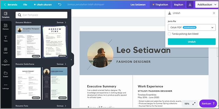 Demikian tutorial cara mudah membuat resume di Canva. Semoga bermanfaat.