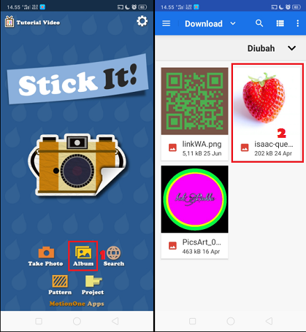 1. Download gratis aplikasi Stick It! di Play Store dan install. Buka aplikasi Stick It!, dan klik album untuk mengambil foto dari galeri atau klik take photo untuk mengambil foto secara langsung. Disini penulis akan mengambil foto dari galeri.