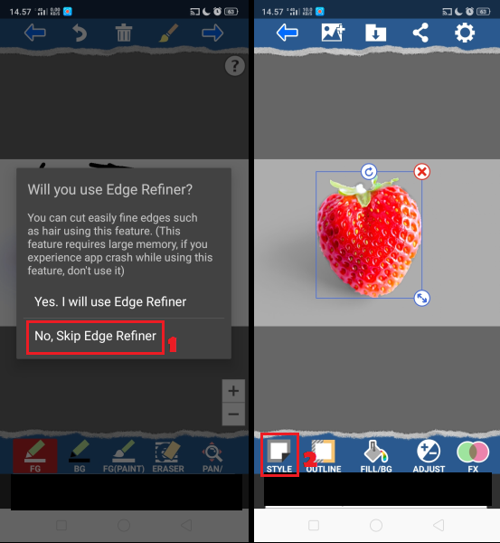 3. Pilih ‘No, skip edge refiner’. Untuk memberikan garis tepi di objek, klik ‘style’.