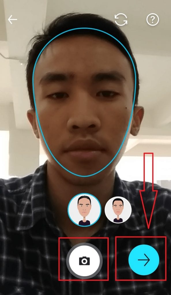 3. Kemudian foto selfie, lalu tap arah panah kanan.