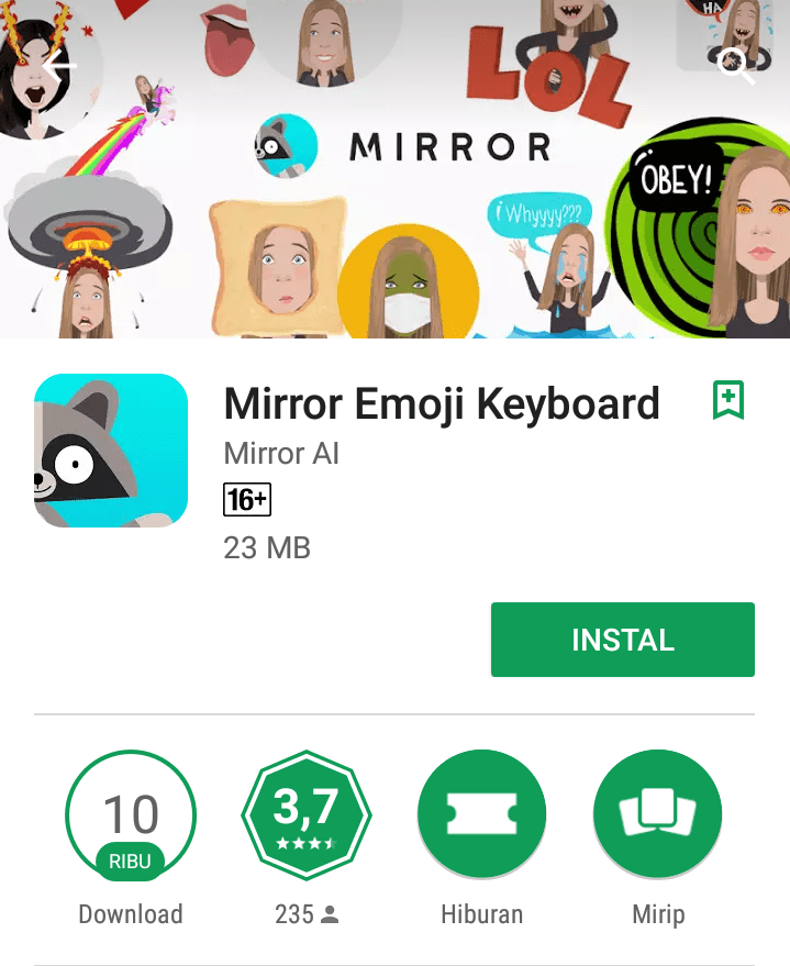 1. Install aplikasi Mirror Emoji Keyboard yang tersedia di Google Play Store secara gratis.