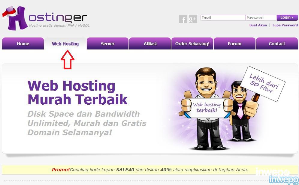 1 Buka dan daftar situs idhostinger.com pilih tab “Web Hosting“.