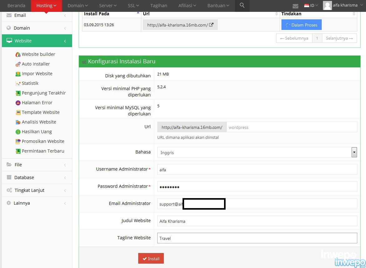 Contoh di sini menggunakan idhostinger.