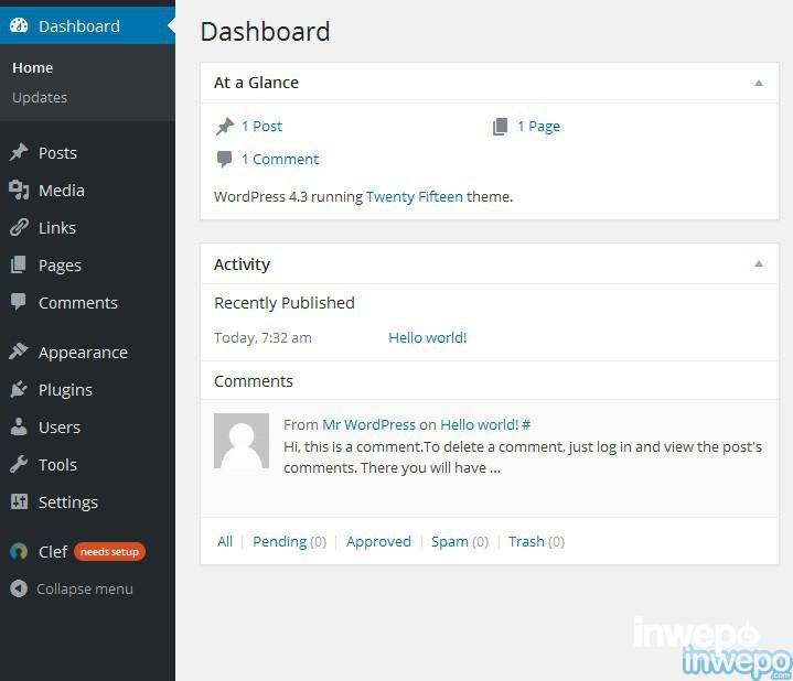Tampilan halaman dashboard WordPress: