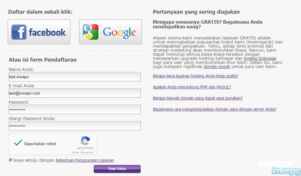 Ada beberapa layanan domain dan hosting gratis diantaranya: Idhostinger.com dan 000webhost.com