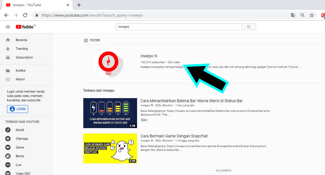 5. Pencarian Channel akan menampikan semua video yang sesuai dengan Keyword yang kamu tuliskan.