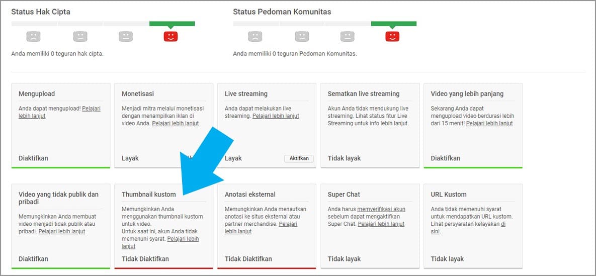 Sekarang, kamu sudah bisa mengunggah desain custom thumbnail. Jadi, apabila kamu membuat channel Youtube baru, dan kemudian tidak bisa menggunakan fitur custom thumbnail, berarti kamu belum memasukkan nomor telepon.