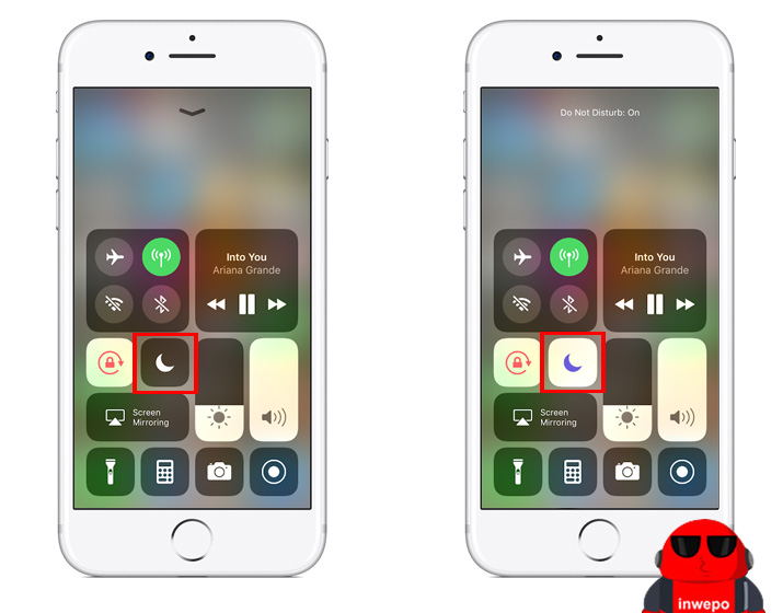 2. Geser ke atas untuk membuka Control Center – Ketuk ikon bulan sabit untuk mengaktifkan Do Not Disturb.
