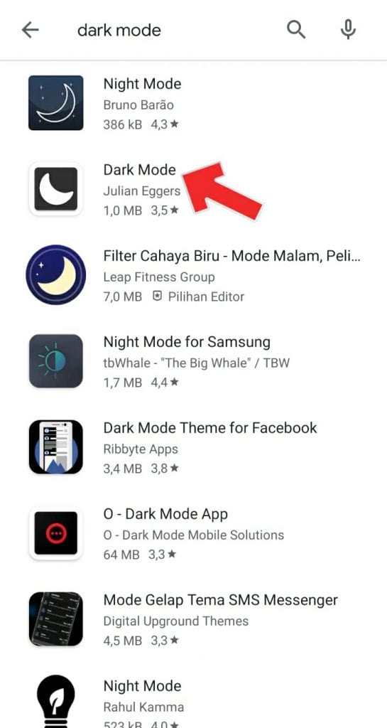 2. Kemudian kamu juga harus menginstal aplikasi tambahan bernama Dark Mode yang bisa kamu dapat dari Play Store.