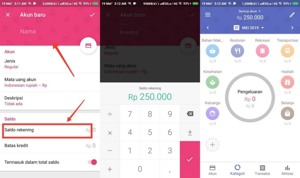5. Tahap selanjutnya yaitu memasukan nama serta nominal jumlah uang yang ada. Dan hasilnya bisa kamu lihat pada tampilan menu awal.