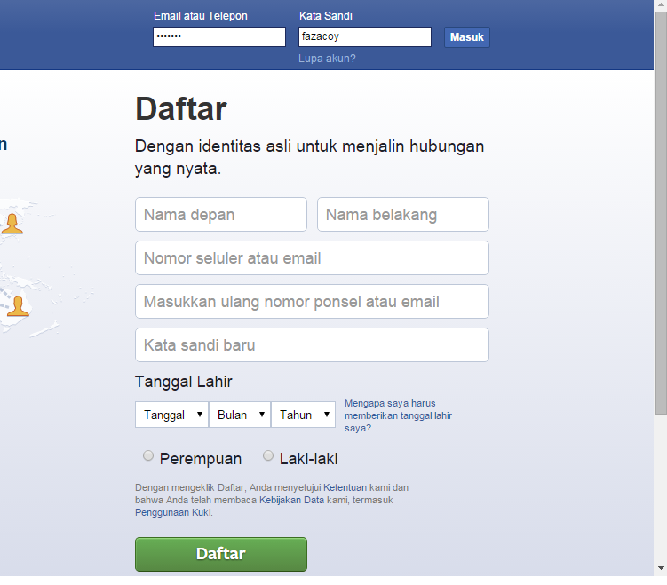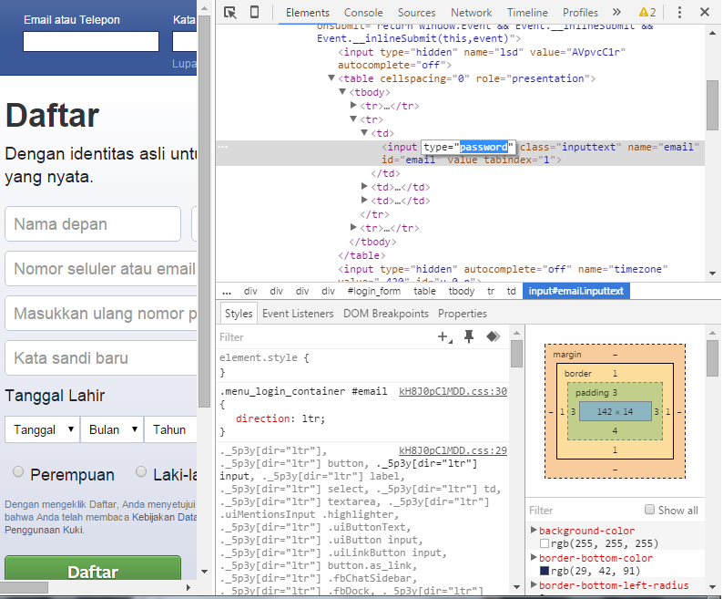 Cara ini cukup simpel dan mudah untuk mengerjai teman, tujuannya adalah agar type ketikan email menjadi type ketikan password (hide) dan sebaliknya, untuk lebih jelasnya silahkan simak tutorial di bawah ini: