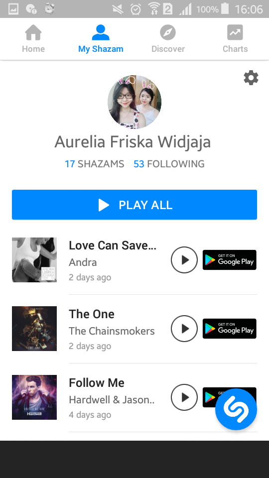 • Melihat lagu yang dishazam oleh teman dengan mengoneksikan akun facebook kita