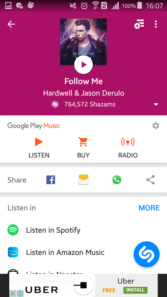 Shazam merupakan salah satu aplikasi terpopuler di dunia dan digunakan oleh jutaan orang setiap bulannya untuk mengetahui musik yang sedang diputar dan melihat musik yang ditemukan oleh orang lain. Dan pastinya gratis!