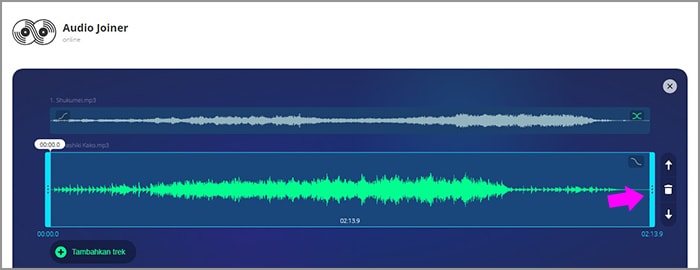 2. Masukkan file audio yang ingin digabungkan dengan klik tambahkan trek.