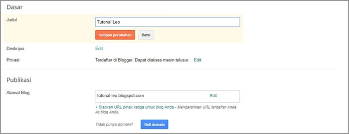 4. Tekan edit. Di sini, alamat URL blog yang baru adalah tutorial-leo – simpan.