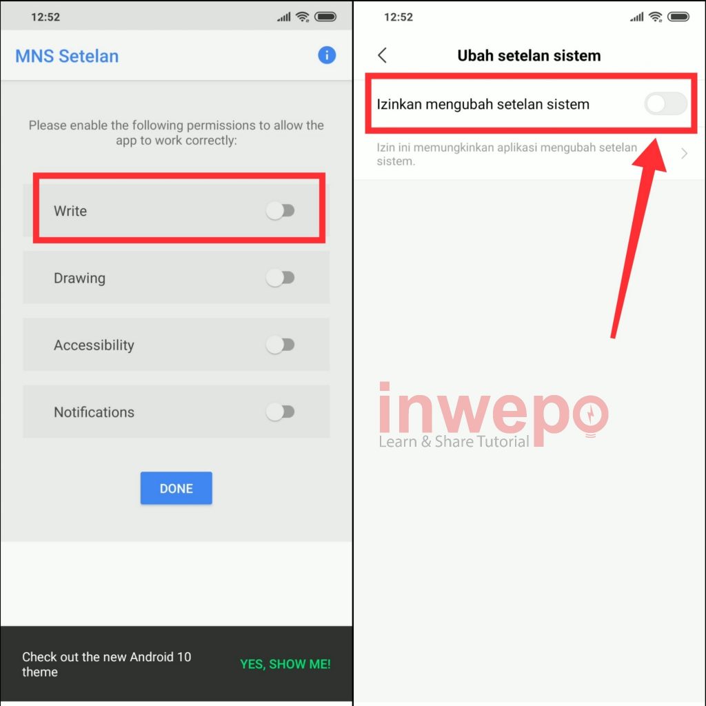 2. Langkah kedua, tap menu Write lalu tap Izinkan mengubah setelan sistem.