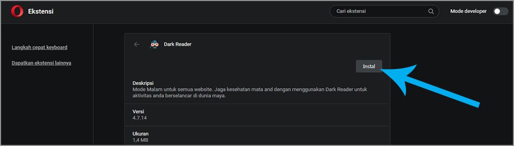 7. Kamu akan dibawa ke halaman ekstensi untuk penginstalan, maka silakan klik instal.
