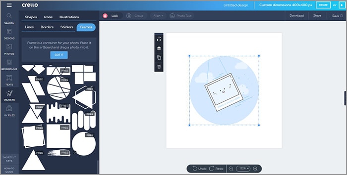 Sebenarnya, kamu juga bisa memasukkan foto atau gambar ke dalam bingkai menggunakan Canva. Hanya saja di Canva, kamu tidak akan menemukan hasil yang berupa PNG Transparent karena kamu diharuskan membayar. Jadi, lebih baik gunakan Crello saja.