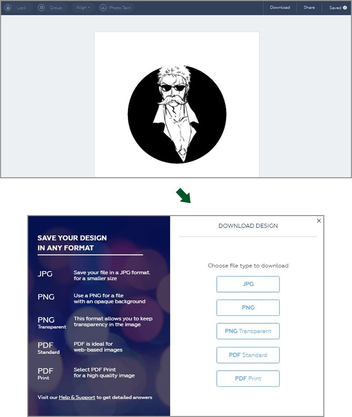 6. Unduh gambar dengan klik download, dan pastikan kamu memilih PNG Transparent agar background putih dihilangkan.