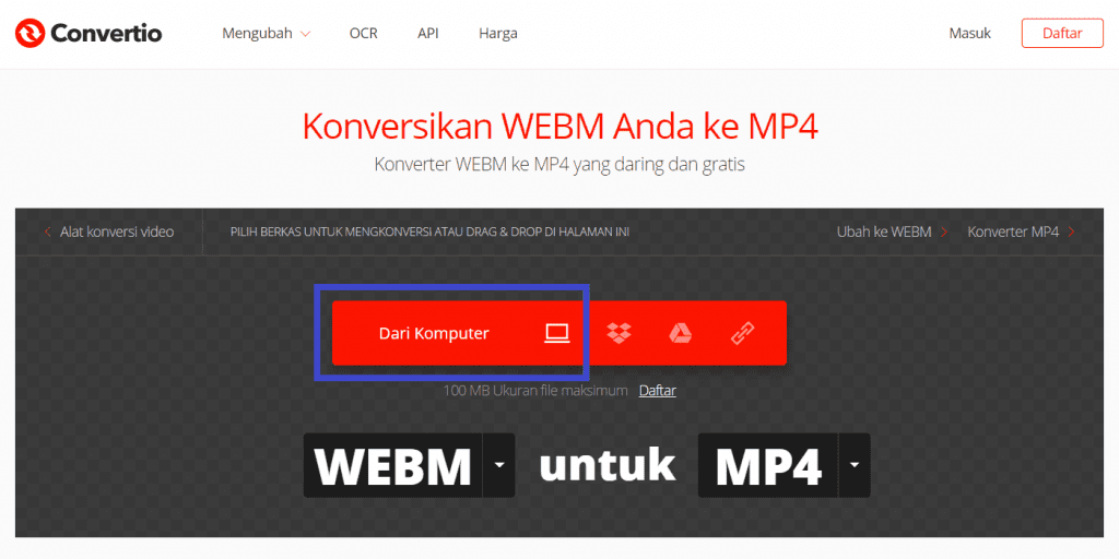 Catatan: Selain dari webm ke format lain, kamu juga bisa melakukan hal sebaliknya pada situs tersebut, bahkan kamu bisa mengubah berkas berformat video ke audio baik itu mp3, m4a, wav dan lain-lain. Kamu juga bisa melakukan konversi beberapa berkas selain media pada situs tersebut dengan memastikan sebelumnya jenis berkas apa saja yang dapat di konversi oleh situs convertIO tersebut.