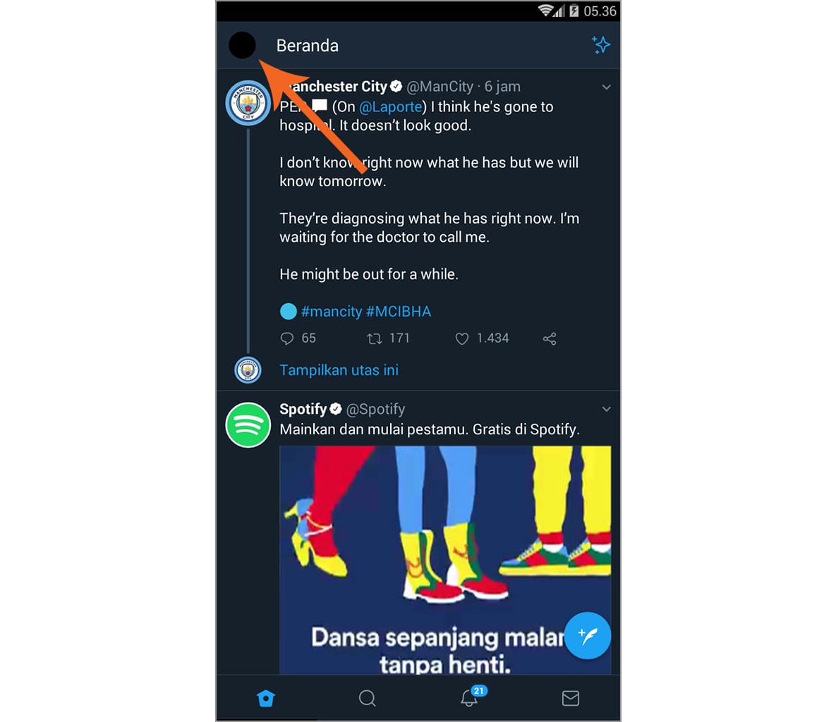 2. Pastikan kamu sudah login, kemudian ketuk foto profil yang terletak di pojok kiri atas.