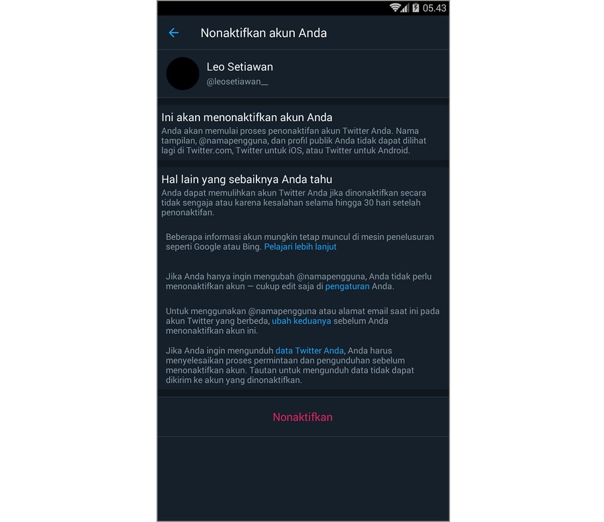 Demikian tutorial cara mudah menonaktifkan akun Twitter di Android. Semoga bermanfaat.