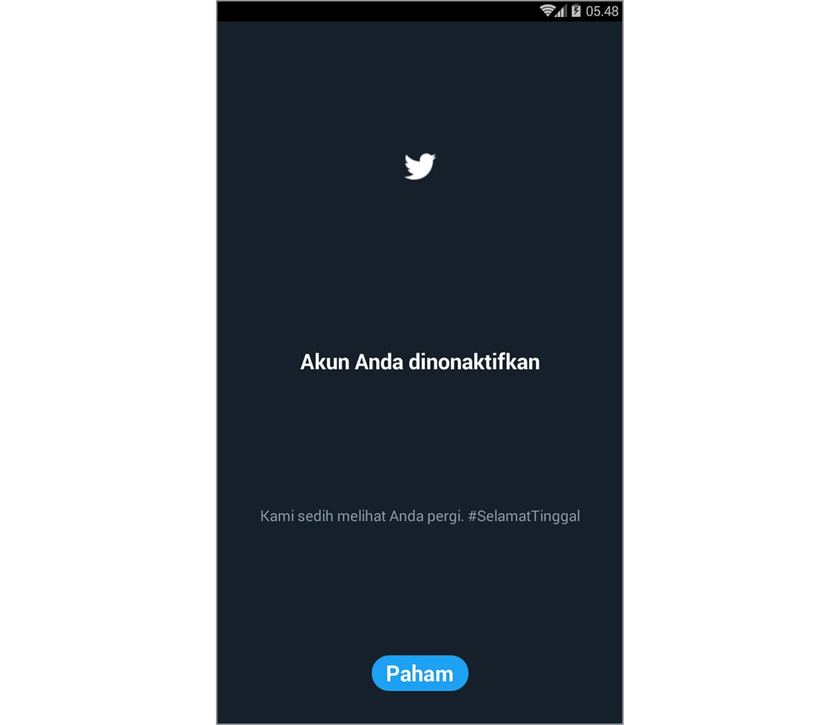 7. Kamu akan otomatis logout dan mendapatkan pemberitahuan jika akun dinonaktifkan.